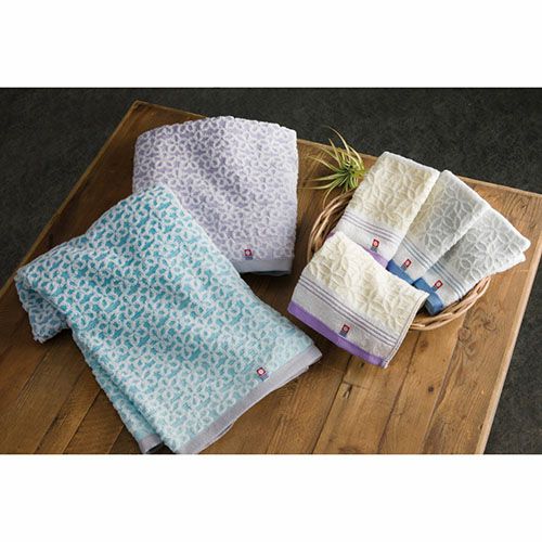 やさしく包んでくれる甘撚りタオルのふっくらとした風合い。環境と人にやさしい化学薬品を使わない方法で精練漂白しました。