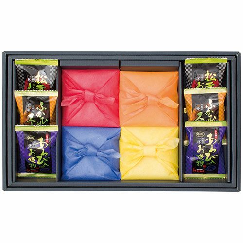 新潟県産こしひかり150g(1合)×4個・ふかひれスープ5.5g・あわび入お吸物4g・松茸のお吸物4.2g各2袋