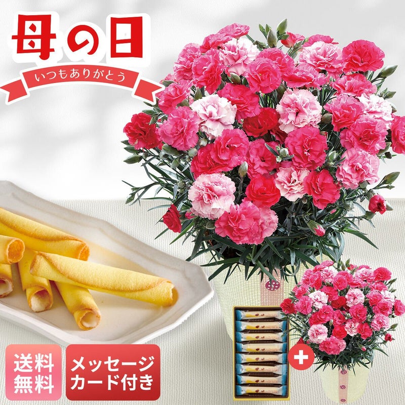 ■セット内容:カーネーション5号鉢、バスケット、お手入れのしおり、おいもラングドロール×8 ”商品サイズ:幅約15cm×高さ約30cm”