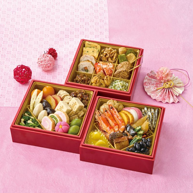 お正月の伝統的なおせち食材を彩よく盛込んだおせちです。肉・魚・甘味なども楽しめるように和の食材を盛込みました。【数量限定】