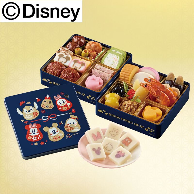 ミッキーやミニーの柄入り紅白蒲鉾やディズニーの柄入り切り餅などお子様も楽しめるおせちです。 【数量限定】