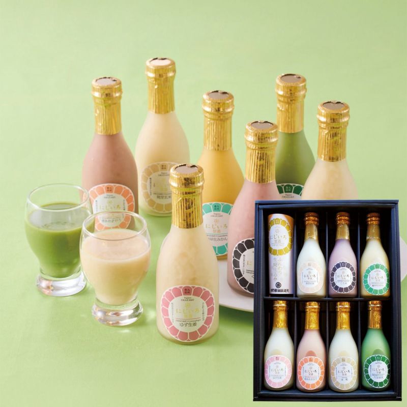 小さな蔵の中で、真白くやわらかな菌糸をびっしりとまとった糀。甘酒に仕込む前のその様子は、まるでお米に花が咲いたようです。この糀の力で穀物が分解され、甘く美味しくなったのが昔ながらの発酵ドリンク甘酒です。糀で作った甘酒は、お米由来の優しい甘さが特徴。にじいろ甘酒は、そんな伝統的な甘酒に福岡県産の旬のフルーツや野菜が出会うことで生まれました。博多あまおう苺の甘酸っぱい味わいや、ゆず生姜の華やかで心休まる味わいは冬のデザートドリンクにぴったりです。