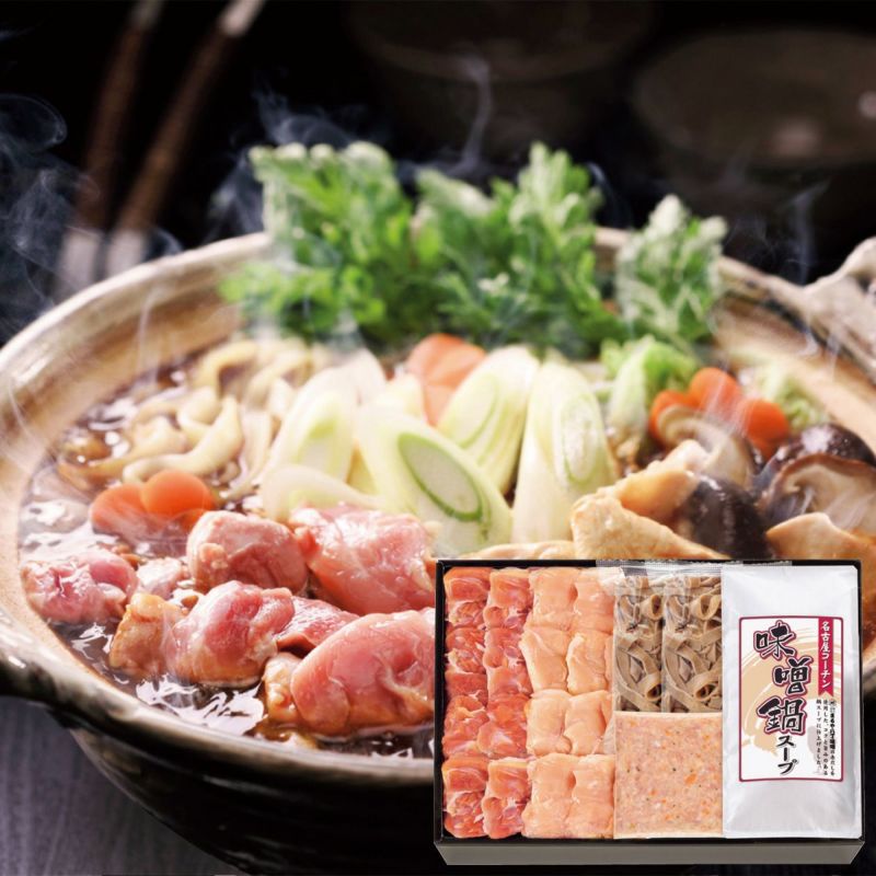 約3~4人前/名古屋コーチン((もも肉・むね肉)合計220g・つみれ150g)、全粒粉入りうどん220g×2、味噌鍋スープ600g