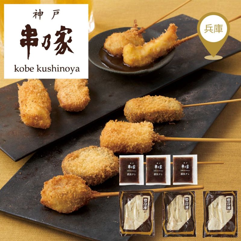 串揚げ専門店「神戸串乃家」の串揚げを8種類詰合せました。素材本来の味を引き立てるタレをセットでお届けします。