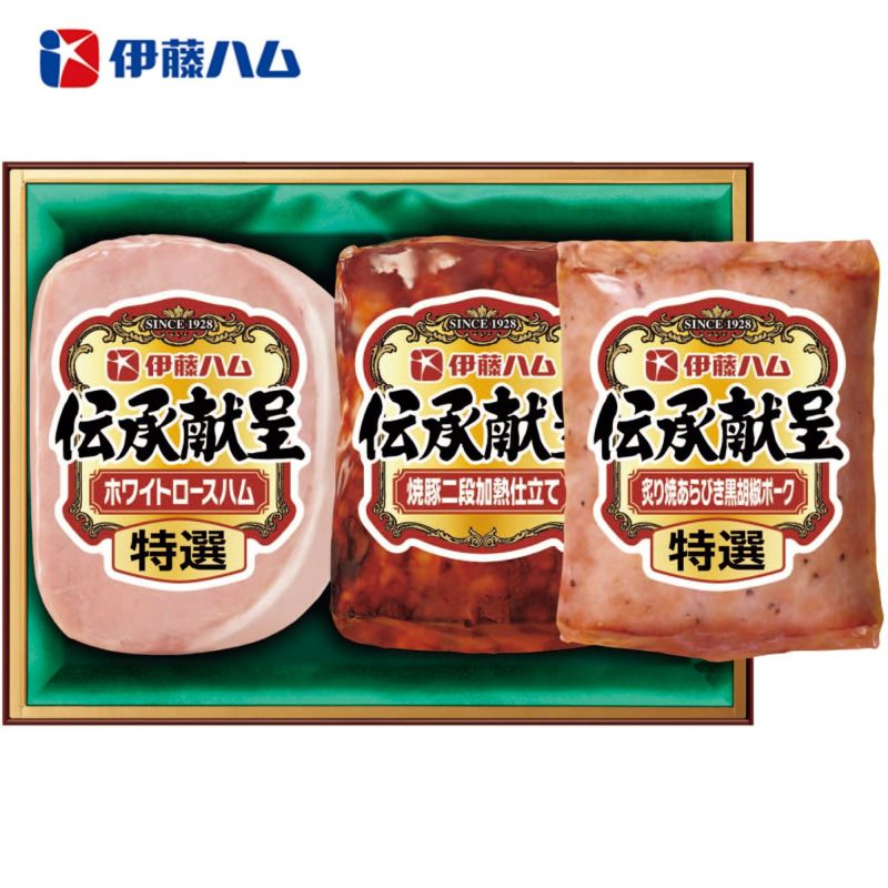 特選ホワイトロースハム180g、焼豚二段加熱仕立て・特選炙り焼あらびき黒胡椒ポーク各160g