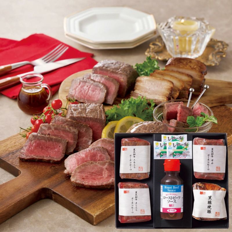 黒毛和牛ローストビーフ3種と黒豚焼豚セット