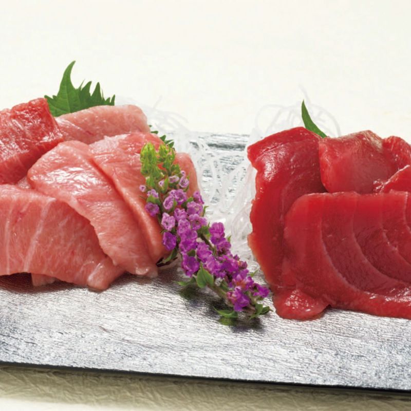 黒いダイヤと呼ばれる高級魚の天然本まぐろ(クロマグロ)。脂がのった中トロの切落しと締まった身質の赤身切落しです。