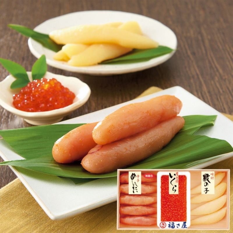 辛子めんたいこ・味付数の子・醤油いくら、3種類の魚卵詰合せ