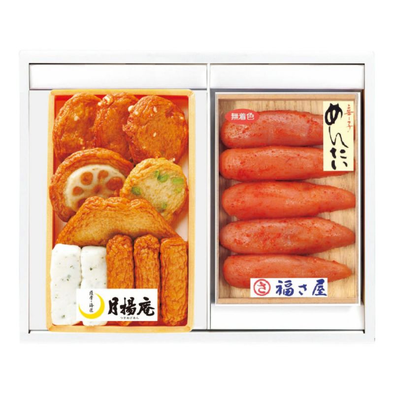 鹿児島の特産品「月揚庵」のさつまあげと福岡の特産品「福さ屋」のめんたいこをセットにしました。