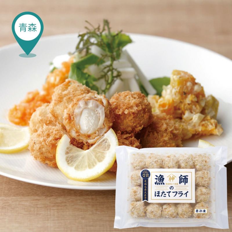 本場、青森県陸奥湾で獲れたほたてが一粒丸ごと入っています。衣のサクサク感とジューシーなほたての旨みが楽しめます。