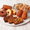 フィナンシェ・はちみつマドレーヌ・パルミエ×各4、ケークアングレ・バームクーヘン(プレーン・ショコラ)×各2、マーブルケーク、マロンケーク、クッキー(黒胡麻と黒糖・バニラ)×各5