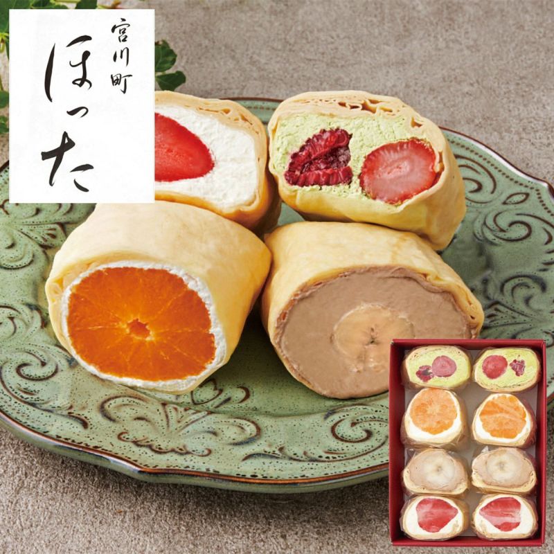 京料理「ほった」店主監修のフルーツづつみは、薄く焼き上げたクレープでフルーツとくりーむを包んだやわらかスイーツです。