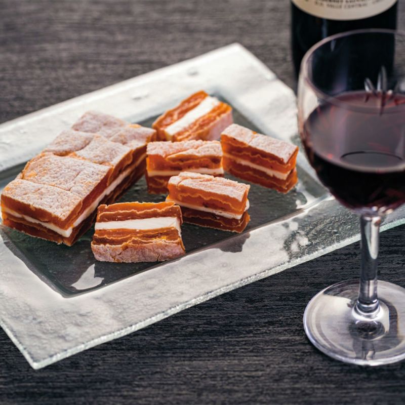 長野県特産の市田柿とクリーミーなチーズをミルフィーユ状に重ねました。濃厚な市田柿の甘味と長野県産クリームチーズを使用した爽やかなチーズの風味が絶妙な味わいです。