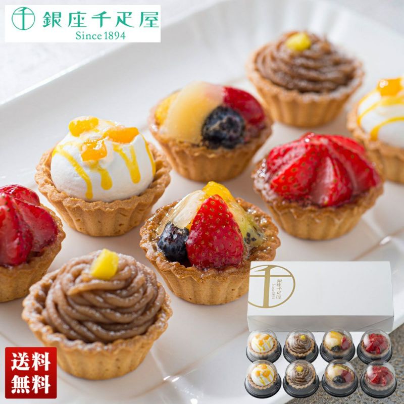 手のひらサイズのタルトに甘さ控えめのクリームやムース、色とりどりのフルーツを飾った「銀座千疋屋」オリジナルのフルーツタルト詰合せです。