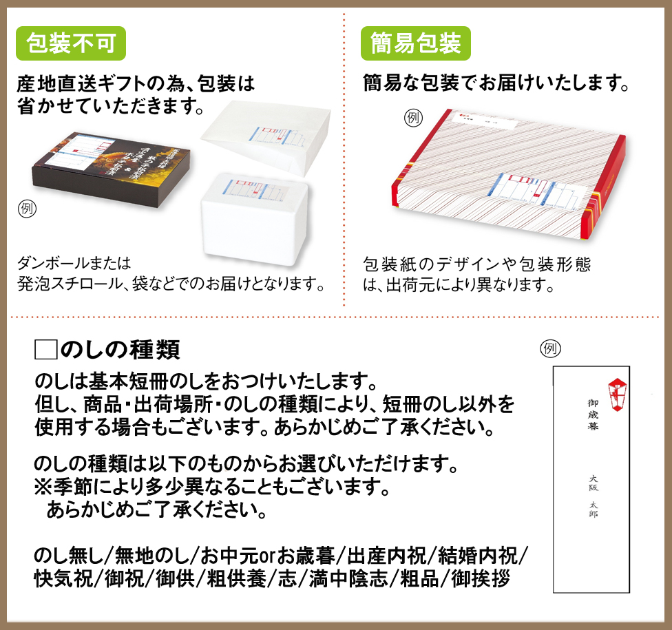 農産物・海産物など生鮮品は、気象状況により、承り終了日を早めたり、 お届け希望日を遅らせていただく場合がございます。また、産地や品種の変更を させていただく場合もございますので、ご了承下さい。