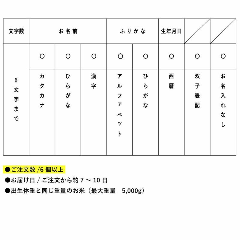 産まれた時の赤ちゃんの体重と同じ重さのお米(体重米)をお届けします。お米の博士号五つ星マイスターが受注後精米袋詰め出荷と新鮮なお米をお届けします。