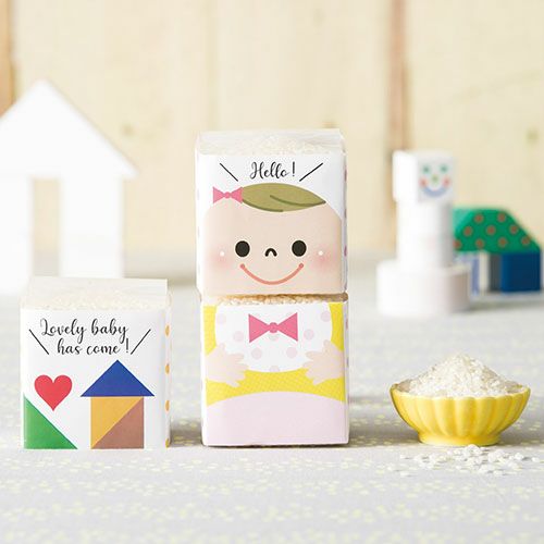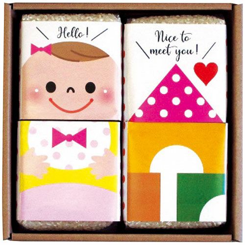 出産内祝いのお名入れギフトです。お米は新潟県産こしひかり無洗米を使用。お米の博士号五つ星マイスターが厳選したお米です。