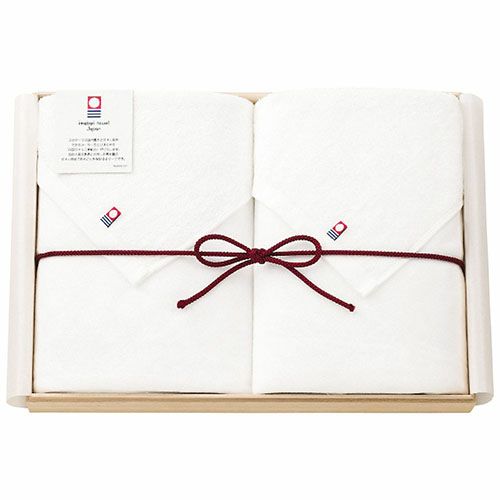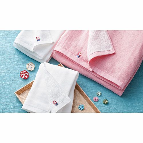 表面はやわらかなガーゼ素材、裏面は吸水性のよいパイル素材で、肌にやさしいタオルを木箱にセットしました